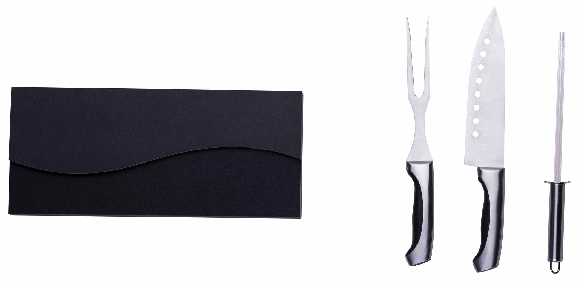 - 3-pcs Stainless steel carving set includes: 8"chefs knife, 7" fork and 8" sharpener