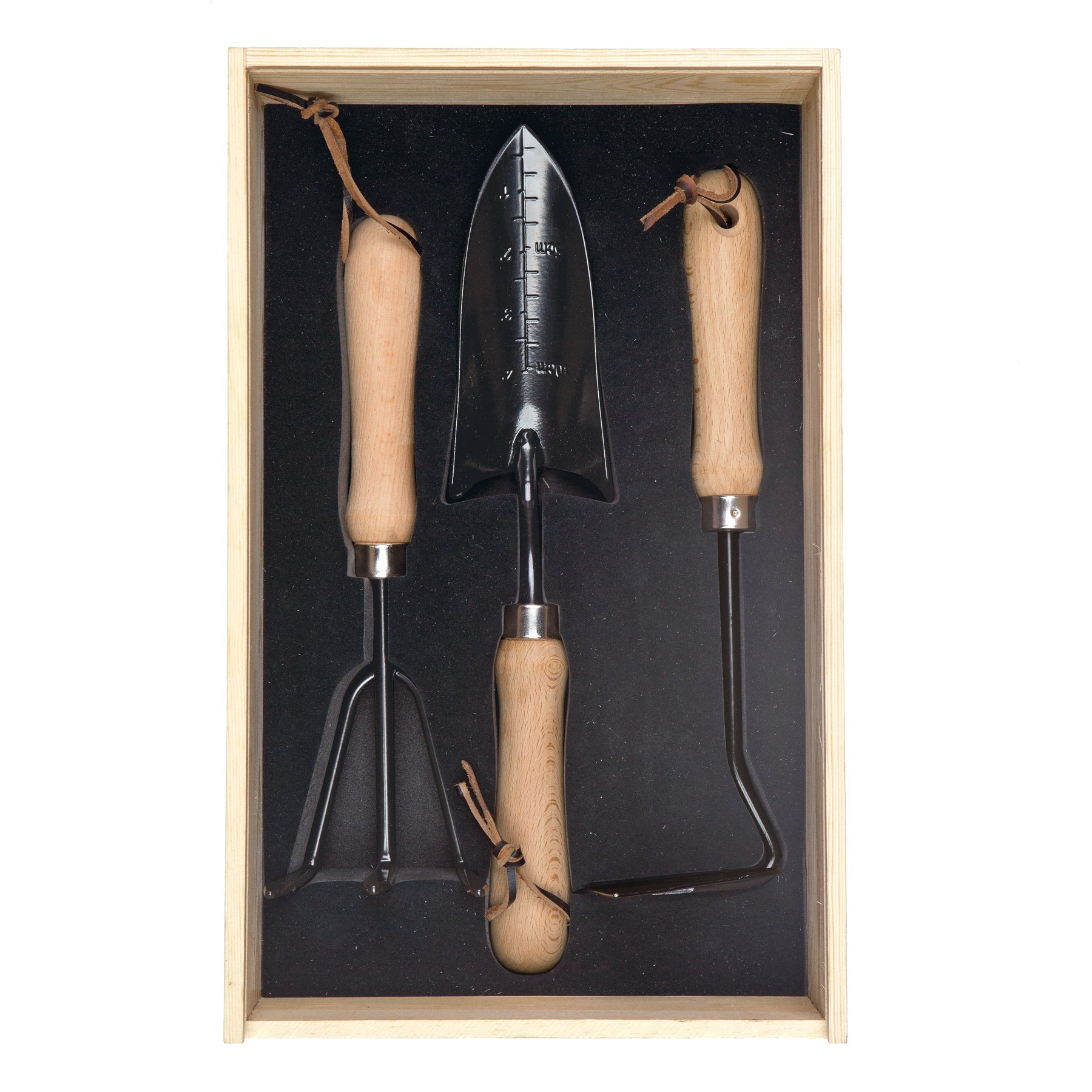 - Includes: 27.5cm cultivator, 34cm spade trowel, 29.5cm soil hoe