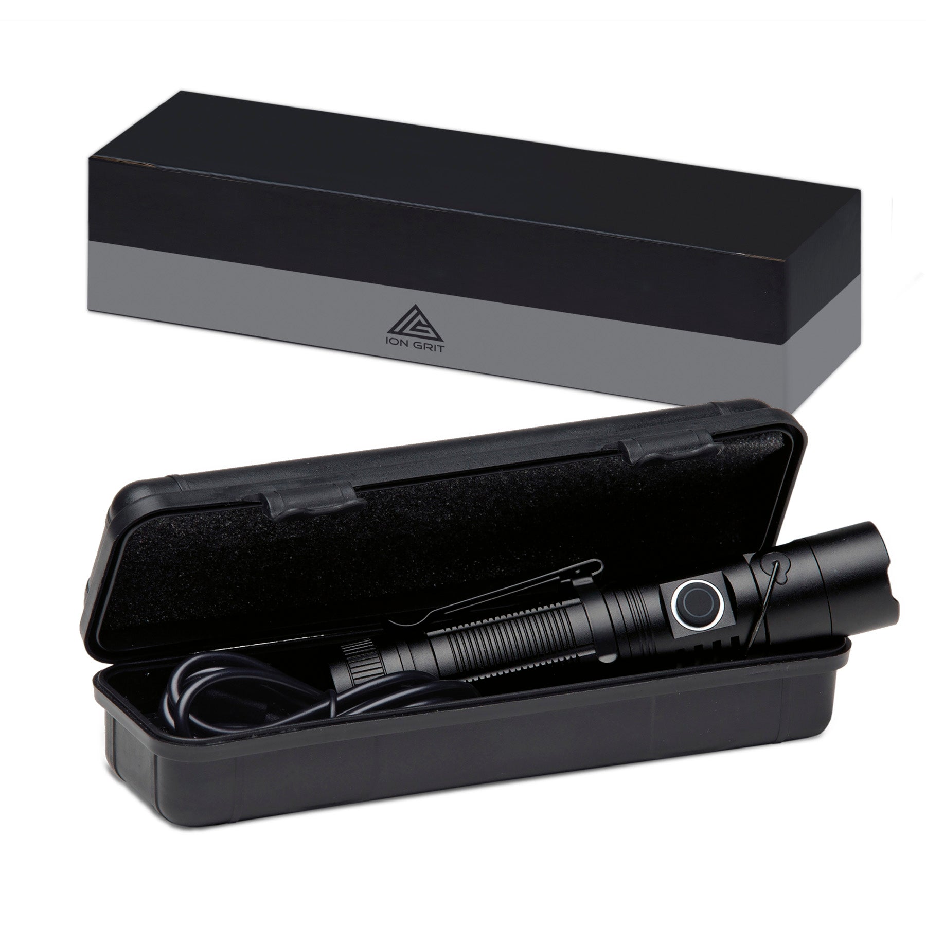 - Engraved Ion Grit logo on torch