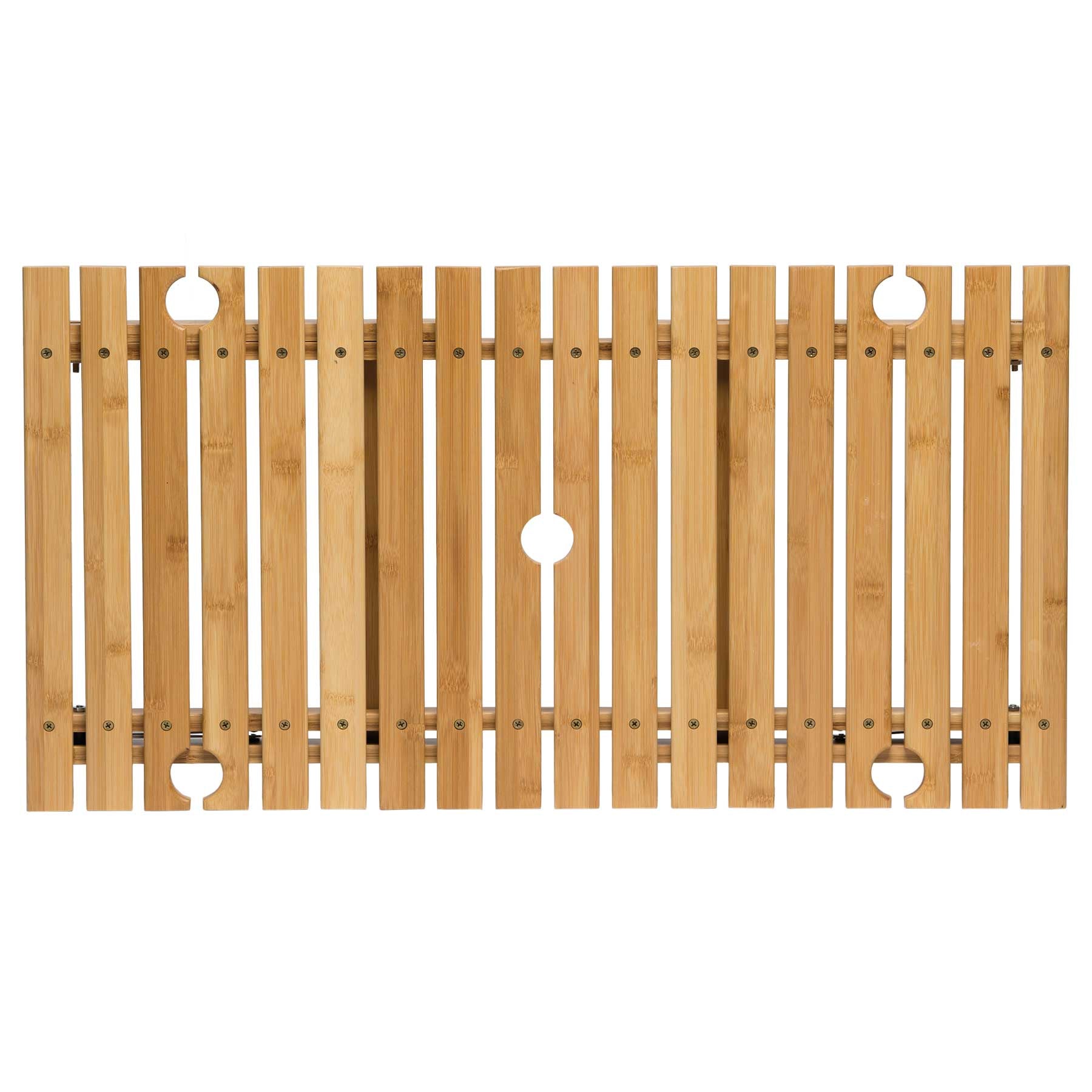- Foldable/Packable - 18 slat alfresco Bamboo table with four integrated wine glass holders and a centre umbrella hole