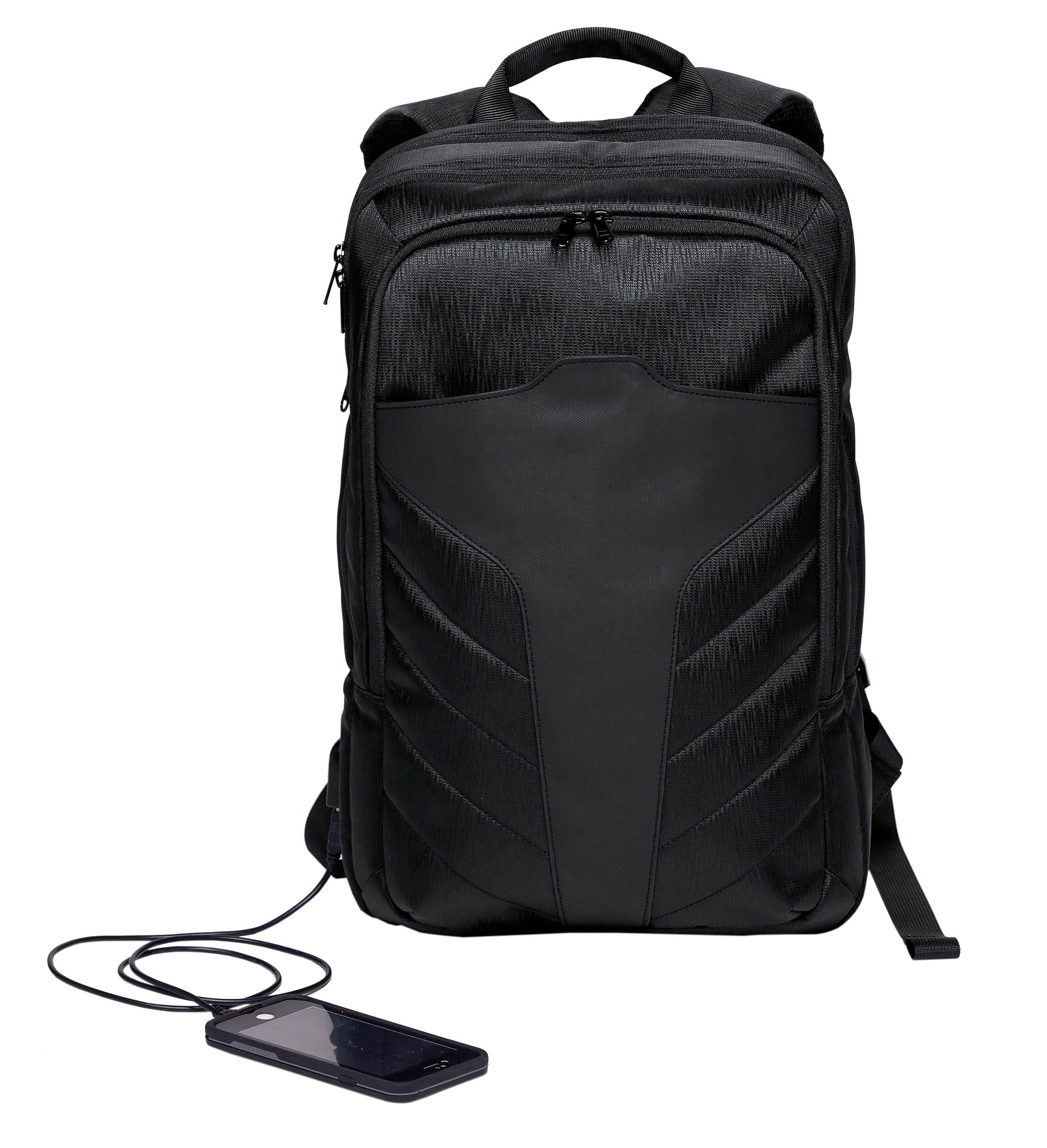 - External USB charger port with integrated internal cable to charge your device