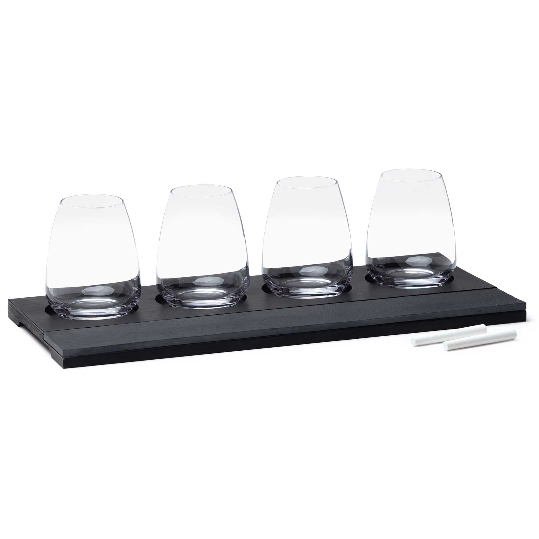 - 7-pcs set includes 4 x Stemless wine glasses, Pine serving tray and 2 x chalk
