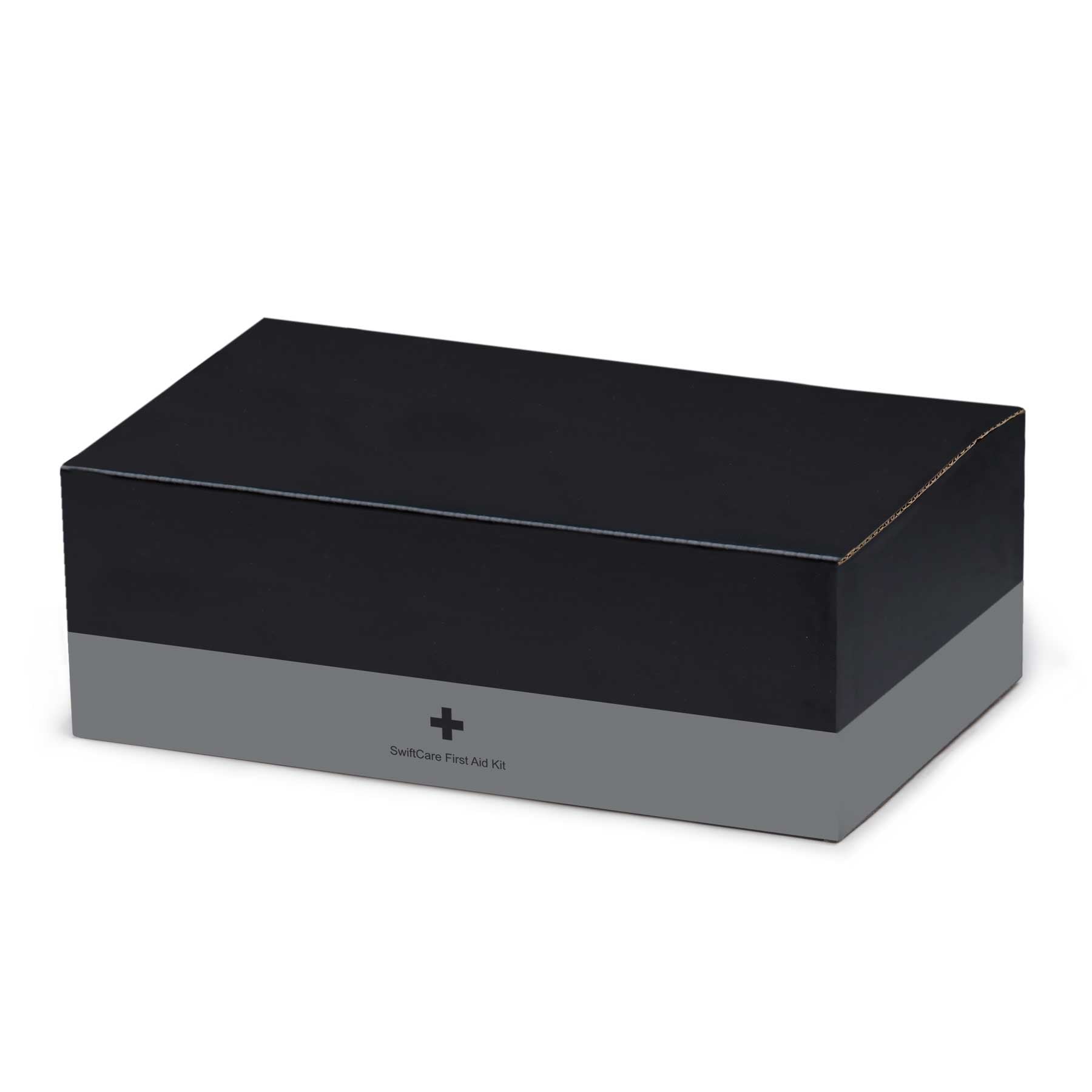 - 225 piece kit includes: Multiple sized adhesive plasters and sterile gauze swabs, Adhesive wound dressings, Alcohol & Povidone-iodine prep pads, Adhesive sterile eye pads, Triangular bandages, Conforming elastic gauze bandages, Heavy elastic bandage, Medical tapes, Gloves,Cotton tip applicators, CPR face masks, Scissors, Metal tweezers, TPE tourniquets, Whistle, Safety pins, Swiss card, Emergency blankets, First aid guide