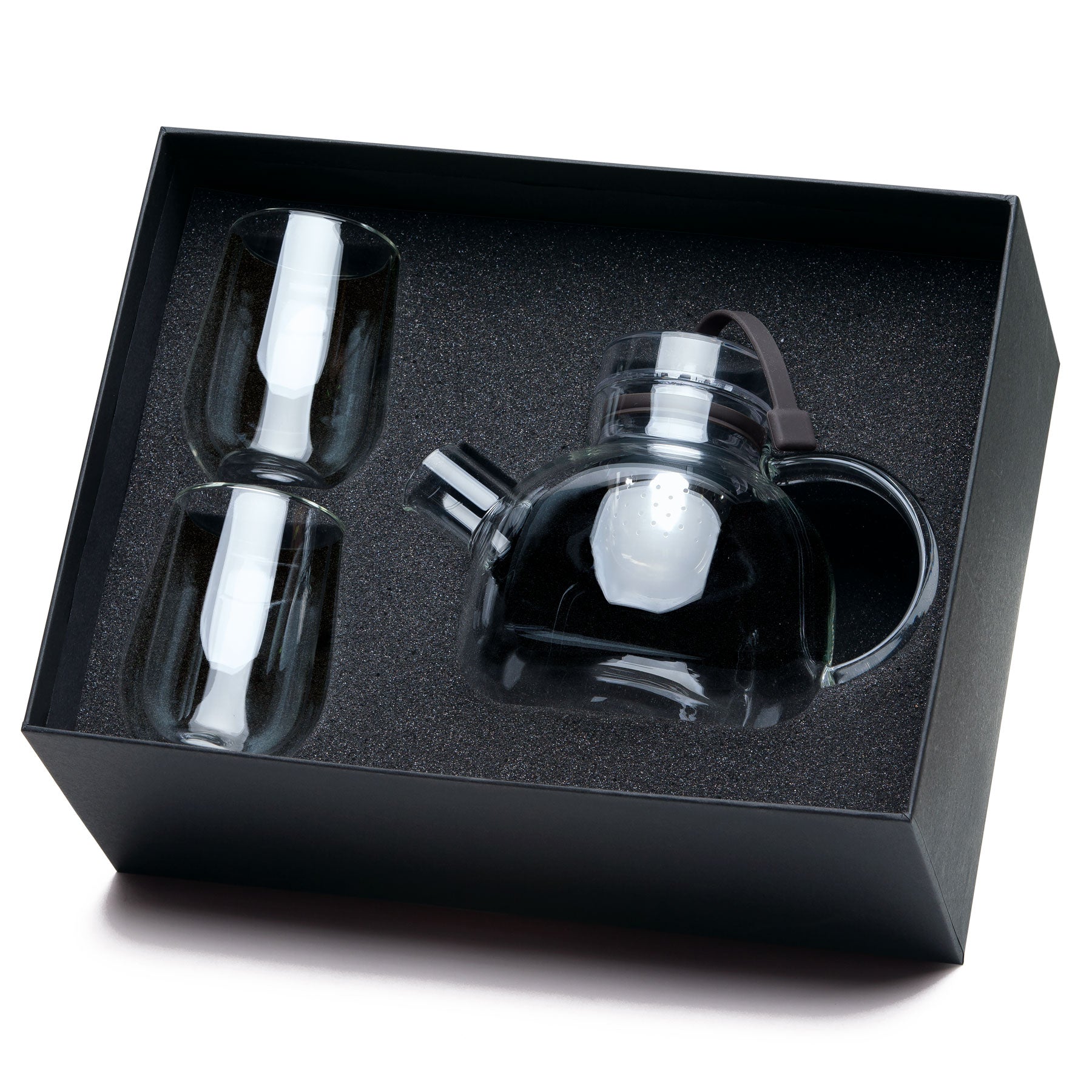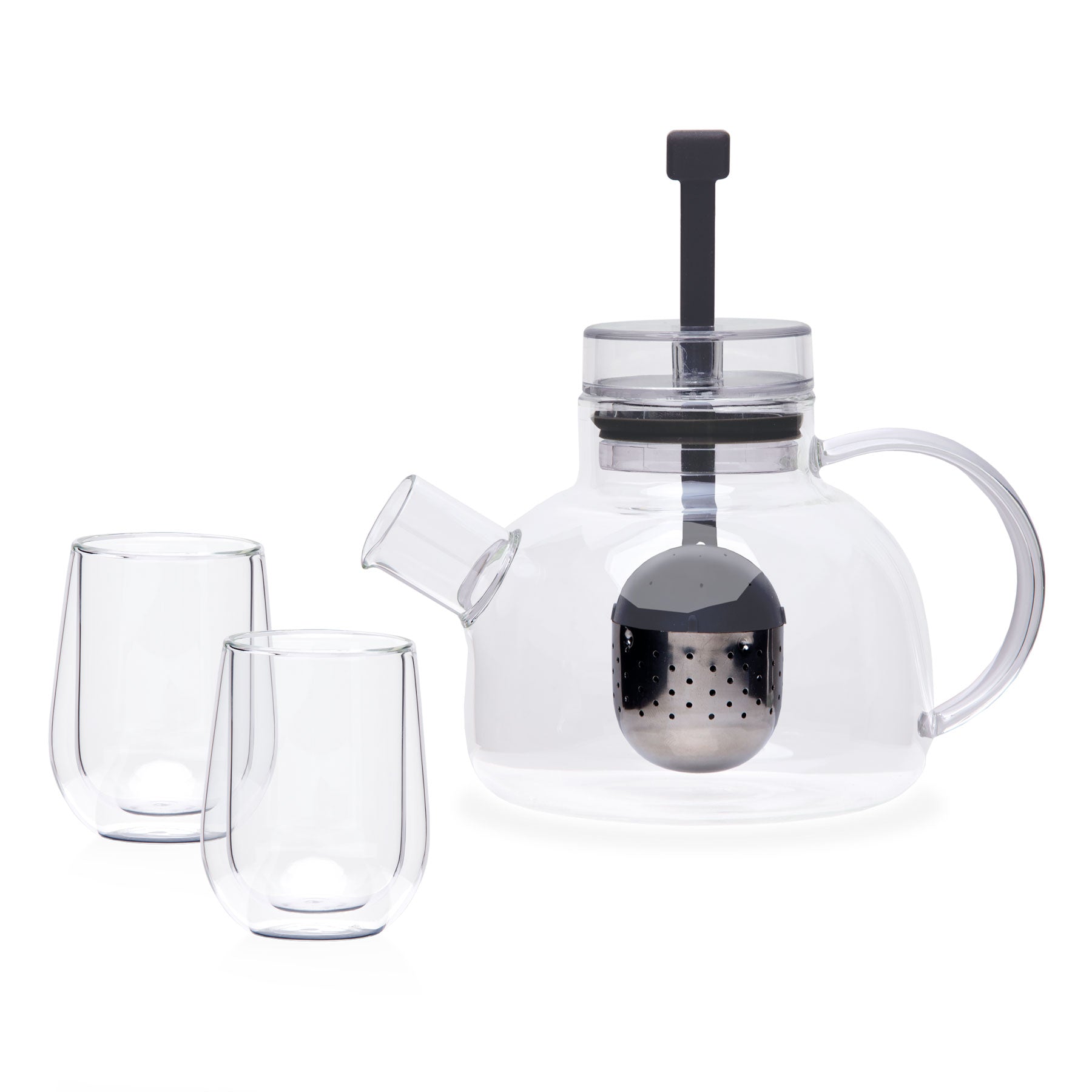- 3-pcs set includes 1 L glass infuser teapot and 2 x 180ml double walled tea glasses